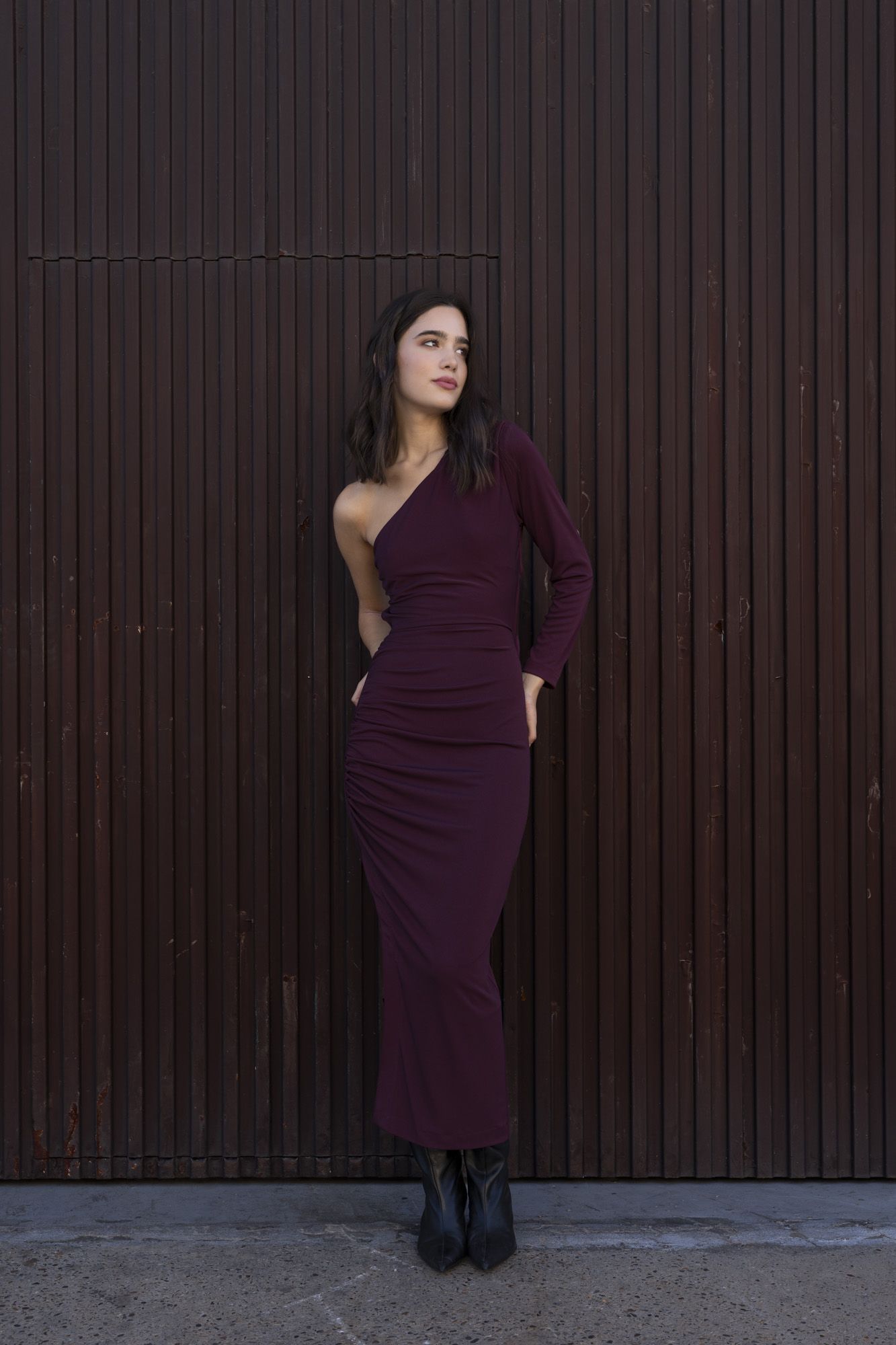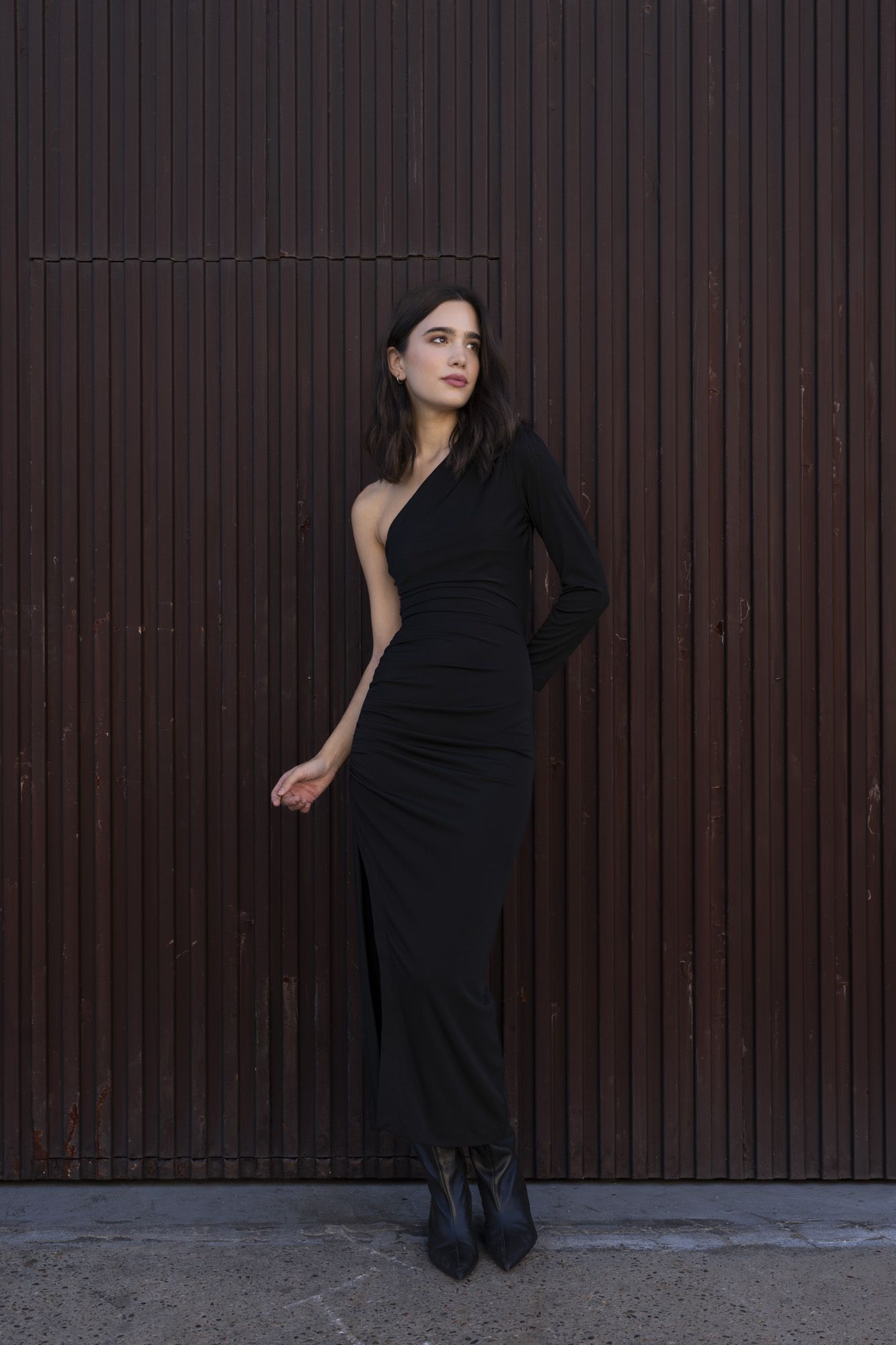 • VESTIDO MIDI ASIMETRICO